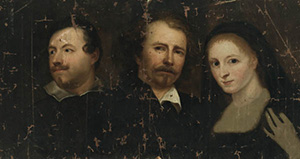 | Werktitel: | Gruppenbildnis, zwei bätige Männer und eine junge Frau darstellen | |||