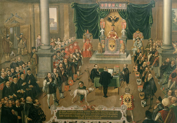 Werktitel: | Verlesung der Augsburger Konfession vor Kaiser Karl V auf dem Reichstag in Augsburg 1530 (Kopie) | |||