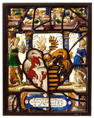 Werktitel: | Wappenscheibe des Hans Jobst von Wangenheim mit den alttestamentarischen Figuren der Judith und Rachel in Architekturrahmung. Zugehörig zu einer Serie von acht Schweizer Scheiben aus der Sammlung der Herzöge von Sachsen-Coburg und Gotha, ehemals in Schloss Rosenau (vgl. Gm.002, 012, 055, 058, 059, 060, 061) | |||