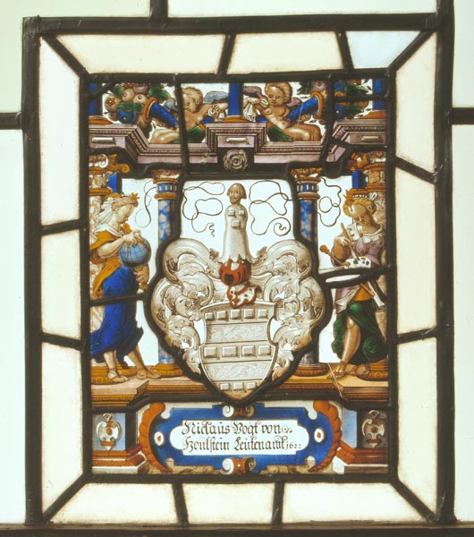 Werktitel: | Wappenscheibe des Nicolaus Vogt von Hontstein mit den Personifikationen der Astronomie und Malerei in Architekturrahmung. Zugehörig zu einer Serie von acht Schweizer Scheiben aus der Sammlung der Herzöge von Sachsen-Coburg und Gotha, ehemals in Schloss Rosenau (vgl. Gm.001, 002, 012, 058, 059, 060, 061) | |||