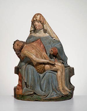 | Werktitel: | Pietà (Vesperbild) mit Maria auf einer Bank sitzend, im Schoß den toten Jesus mit hochgewölbtem Rücken, die Hände über den Oberschenkeln gekreuzt | |||